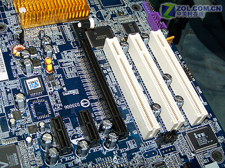 技嘉K8NF-9主板提供PCI-E总线显卡插槽,2个PCI-E X1和3个传统PCI插槽。