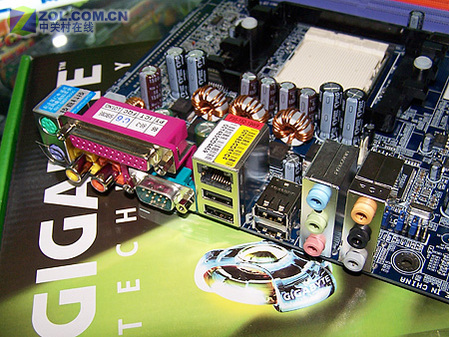 技嘉K8NF-9主板提供4个USB接口。板载网络和集成声卡接口。音频方面提供2个同轴接口。
