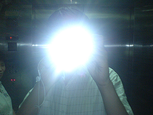 第八张是小编在电梯里对着镜子自拍的照片,由于机身上有两颗LED灯泡,所以显得非常的亮,虽然不能说他是闪光灯,但是达到一般补光的目的还是没有问题的!