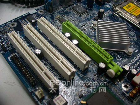 主板扩展方面,因为是一块865G芯片的主板,在提供板载显卡的同时,还提供一根AGP8X显卡插槽。另外,它还具备3根PCI插槽,对于普通用户基本够用。