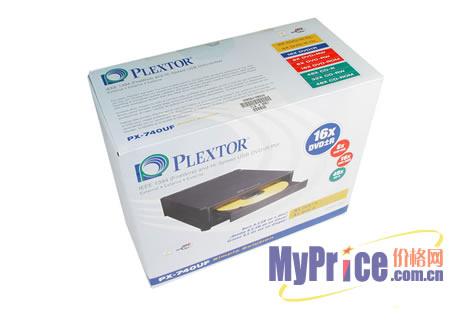 PX-740UF是同类产品中支持盘片规格最全而且价格最低的产品之一,该DVD刻录机支持16X DVD+R、16X DVD-R、8X DVD+RW、6X DVD-RW、8X DVD+R DL、4X DVD-R DL,无论是它所支持的盘片种类还是刻录速度,这款产品都可以算是比较优秀的DVD刻录机。