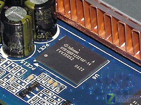 华硕7600GT显卡核心开发代号为G73,采用了90nm新工艺制程,12条渲染管线,默认频率560MHz。显存方面使用了最新的英飞凌1.4ns GDDR3显存颗粒,正面4颗,组成256MB、128BIT显存规格。
