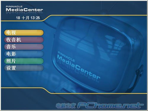 在装完驱动和应用软件后,需要先设置然后才可以看电视,详细的设置界面体现了品尼高在视频技术上的领先优势,在设置完毕后漂亮的界面让人耳目一新。在搜索到了几个频道后立刻截图。可惜啊PCHOME的电视信号差实在不能截出高质量的画面。