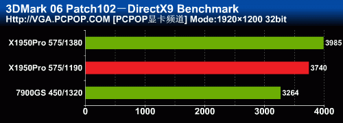 双敏非公版X1950Pro的显存频率较低,所以没能超越7900GS,但落后幅度已经不多了。