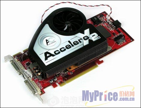 镭姬杀手X1950Pro豪华版采用ATI传统的红色PCB,巨大的散热器比整块显卡还大出一截。显卡采用了超炫的ARCTIC COOLING Accelero X2散热器,这款风冷散热器具备超酷的外观、超强的散热效果和超低的噪音,是目前许多超频发烧友梦寐以求的装备。