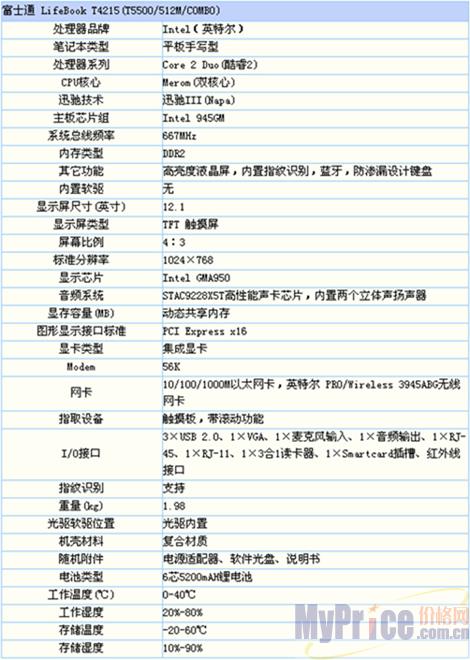 此外,富士通T4215还带有指纹识别和蓝牙功能,并且预装了微软最新的vista操作系统,12.1寸的旋转液晶屏幕相当的靓丽时尚。
