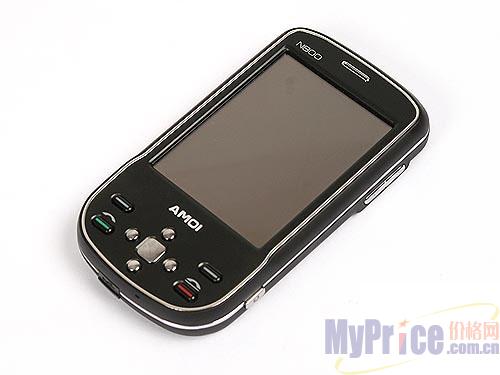 机身正面嵌着N800引起为豪的VGA分辨率(640×480像素)26万色2.8英寸液晶屏幕,显示效果相当惊人的细腻。屏幕的左上方和下方分别是型号“N800”和夏新的“AMOI”logo。主按键方面夏新N800则非常简约,仅有常见的拨号、挂断和左右软键,功能按键部分采用四个银色圆形单独方向键和中心确认键的布局,非常美观。