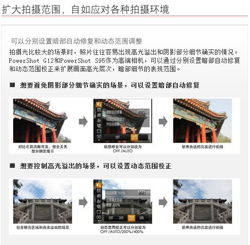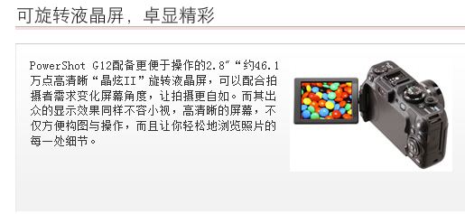 PowerShot G12配置28mm广角和5倍的光学变焦,焦距段涵盖了从广角到中长焦,既可以拍摄宽阔壮观的风景,也可以将远方的美景尽收眼底,此外,