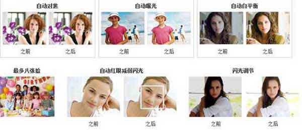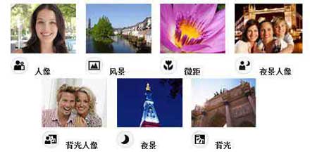 场景选择:高感光度/夜景/夜景人像/柔和快照/风景/海滩/雪景/美食/宠物