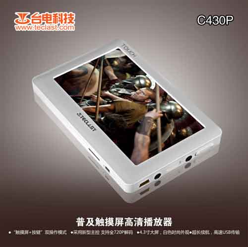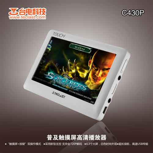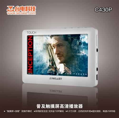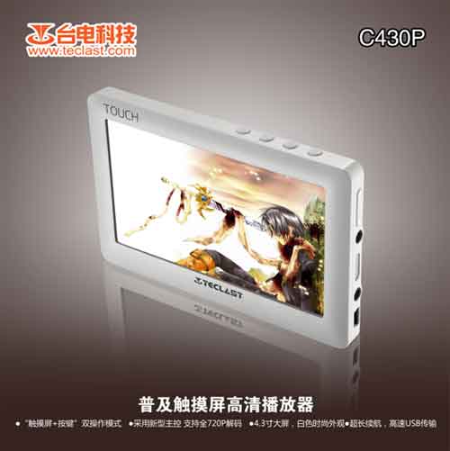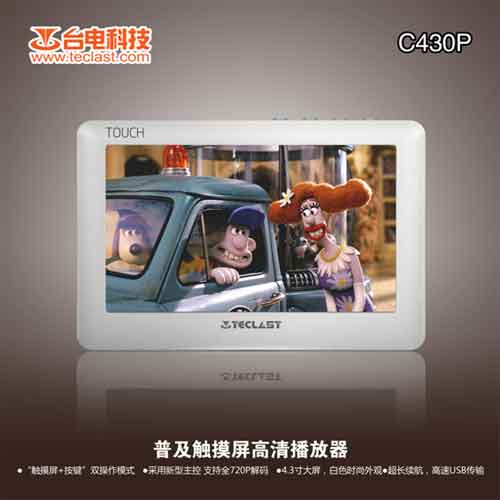 台电c430p采用流行的4.3英寸大屏幕,支持720p高清视频全格式流畅直播,超便利的全屏触摸+按键便利操控,无论是看高清、电子书能随心所欲的操控,极为方便易用!台电c430p还支持电视输出、红外遥控、音乐播放等全面功能,而它的售价每个人都能轻松接受