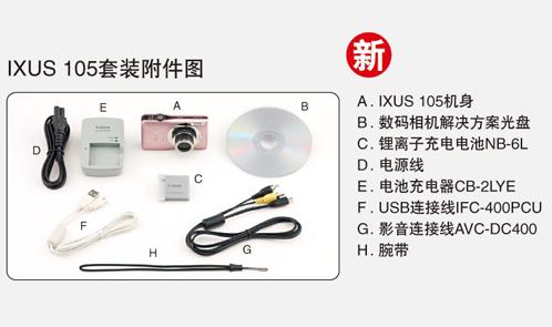 佳能IXUS 105 IS在外形设计上依旧延续着之前产品的风格,同时也继承了佳能IXUS系列相机做工精良的金属机身和圆滑的外形。相比一年前的相机,IXUS 105在外观上稍作改动,对整个相机采取了“收腰”的处理,这让IXUS 105看起来更加苗条,也更时尚。在屏幕方面,佳能IXUS 105采用了一个具备23万像素的2.7英寸液晶屏。