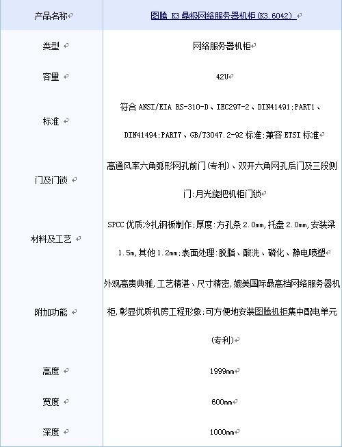 近日,图腾再次推出K3鼎极网络服务器机柜产品上市,编者从经销商处获悉,K3系列旗下拥有丰富的机柜产品,可以满足用户全方面的应用需求。作为国产品牌图腾K3.6042服务器机柜先降价促销,价格降到3080元,北京市内免费送货上门,有采购用户关注。图腾K3.6042机柜 图腾K3.6042机柜采用“鼎极”框架型材,组成整体焊接框架,内部安装空间极大。也可制成拼装框架结构,以便散件发运。 所有柜门均制有发泡缓冲胶条,提供较好防护,开关门手感一流。坚固的并柜连接;可同时安装脚轮和支撑脚;结构极为坚固,最大静载达1000KG,移动承载350KG。