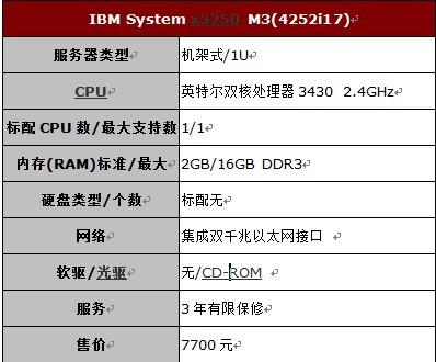 中小型企业市场无疑成为今年商家重点关注领域。IBM作为IT业界领先者,09年推出了两款基于至强3400处理器的System x服务器,其中System x3250 M3服务器是一款1U机架式服务器,采用模块化设计结构,方便用户进行IT托管应用。近日,笔者了解到这款IBM 1U机架式x3250 M3(4252I17) 服务器针对SMB应用降价推出,售价仅7700元。 IBM x3250 M3(4252I17)