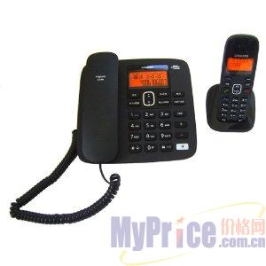 座机一部、手柄一个、子机一个、子机充电座一个、电源适配器2个、充电电池一块、说明书一本、直线一条、曲线一条