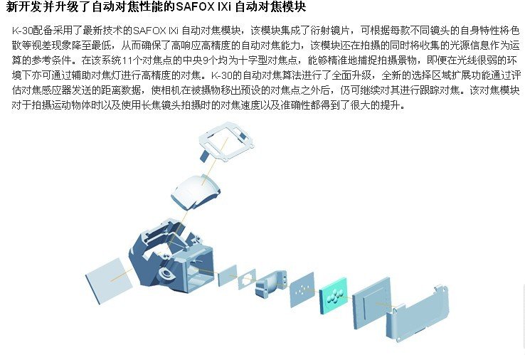 宾得 PENTAX K-30/DAL18-55 F3.5-5.6AL 单反套机(白色)有效像素 约1628万 传感器类型 含原色滤光镜的CMOS 传感器尺寸 23.7 x 15.7 (mm) 分辨率 4928x3264