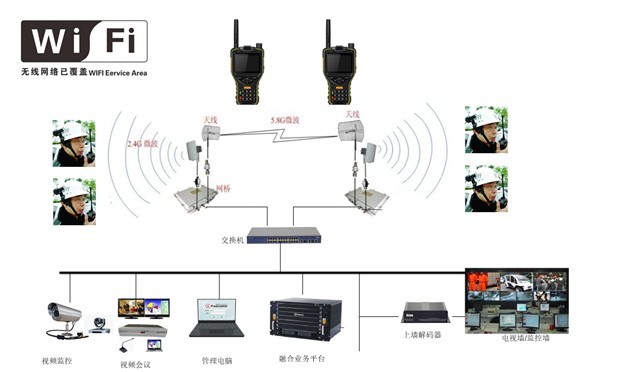 Wi-Fi是一种能够将个人电脑、手持设备(如Pad、手机)等终端以无线方式互相连接的技术,在车站、机场、港口、大型的工业/科技园区广泛应用。我司自主研发的移动单兵智能终端支持WiFi组网,接入自主组网的WiFi无线局域网,实现双向音视频功能,提高保安队伍的执勤、工程师现场处理机械故障、现场事故处理的效率。